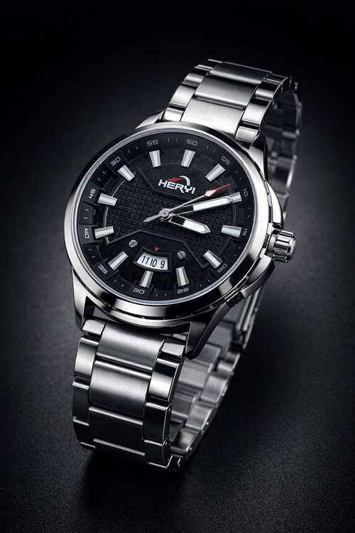 HERYI Luxury Sports Watch for Men – Stainless Steel Black Edition